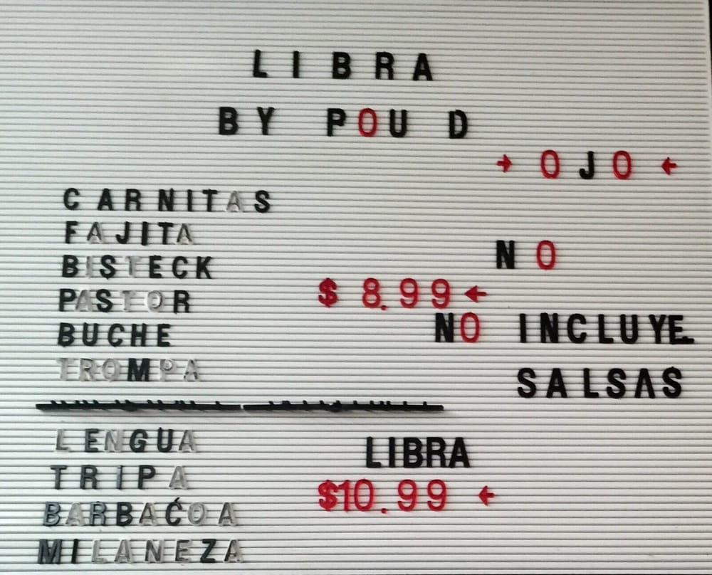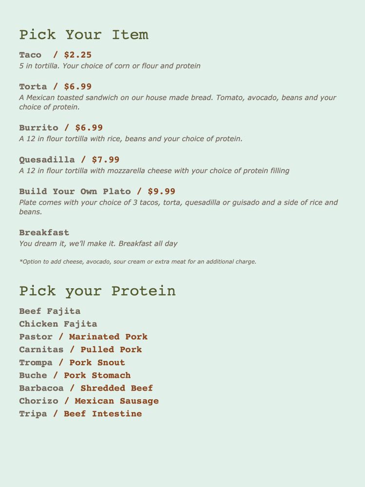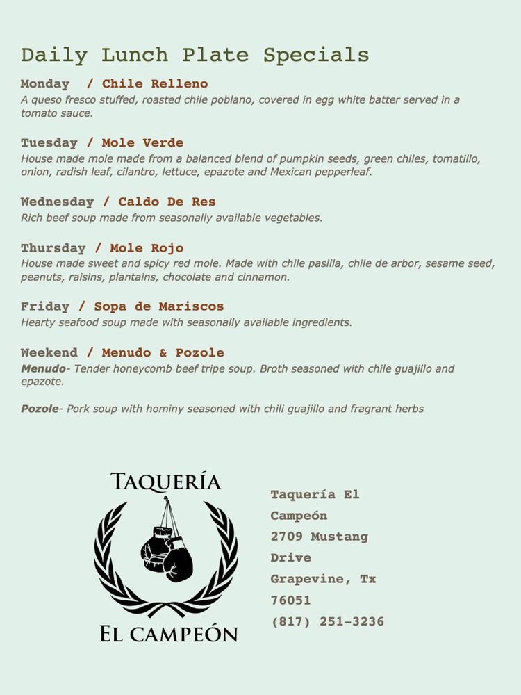 Taqueria El Campeon Menu